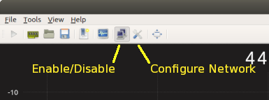 You can quickly enable and disable the network control in Gqrx by using the buttons instead of the menu: