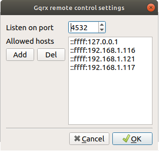 To configure Gqrx you will need to add the IP address of the S.A.T. into the network setting panel.