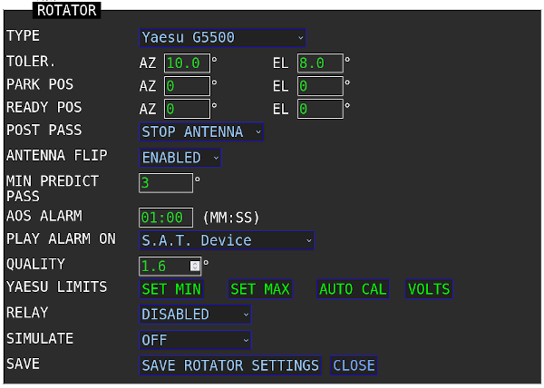 | SCHEDULE | Enable/Disable satellite schedule mode. See SCHEDULE section below for details. |