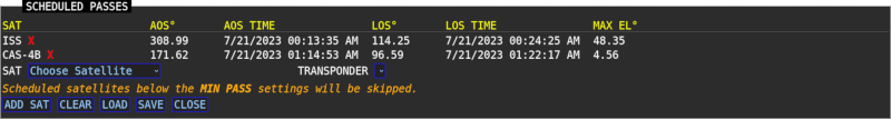| PASS LOG | Open the satellite pass log. |
