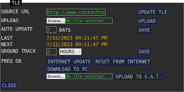 | CLOSE | Close the TLE/FREQ DB Panel |