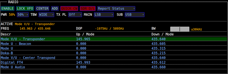 | TLE/FREQ DB | Open TLE and transponder settings |